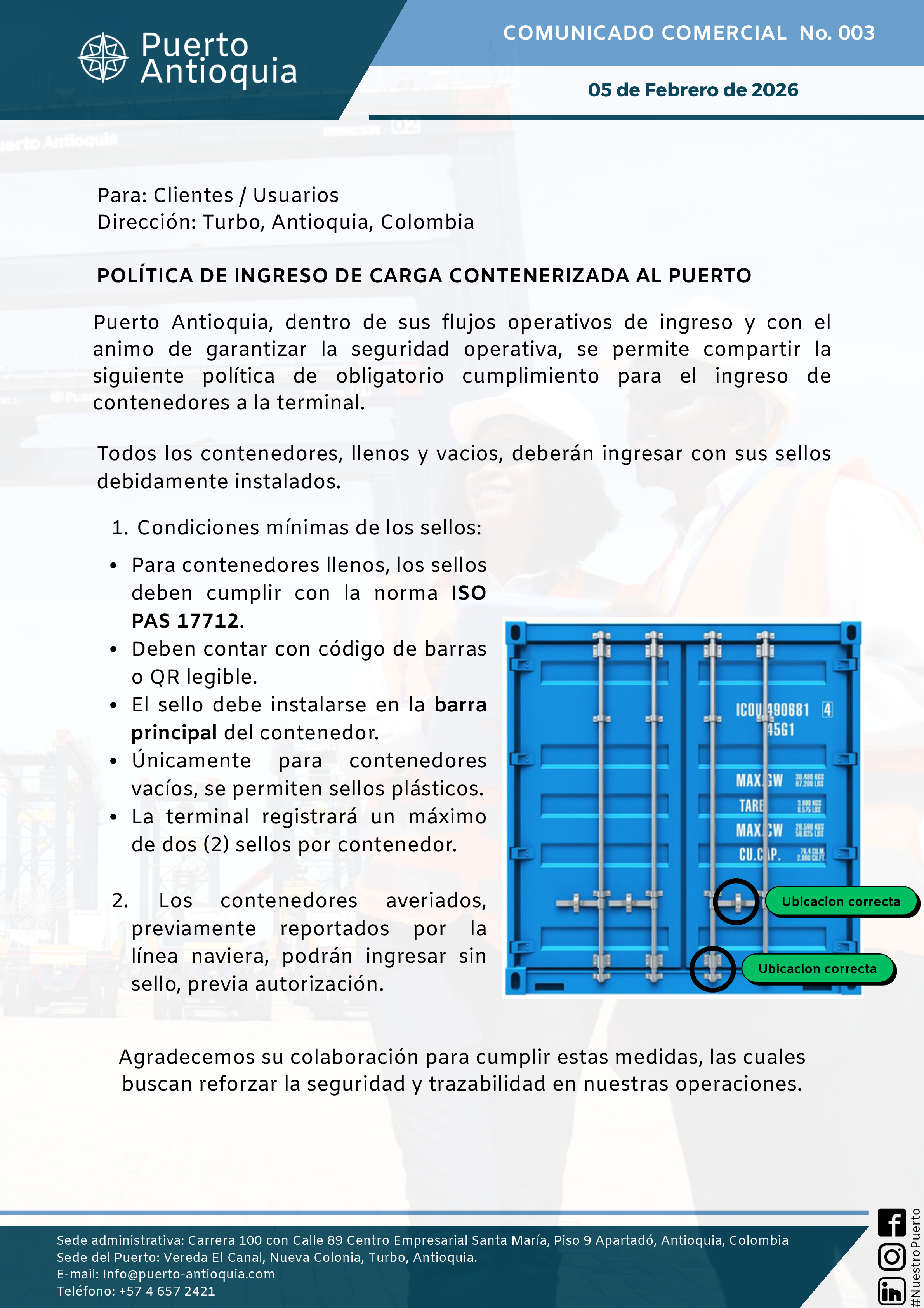 Politica de ingreso de carga contenerizada al puerto